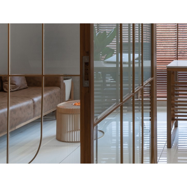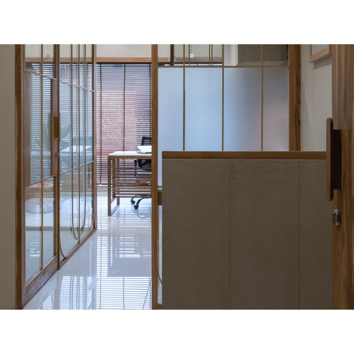 A curtain of horizontal wooden strips is designed in the middle space. A cocoon-like space with curve ceiling is created to enhance diversity in the continues linear space.