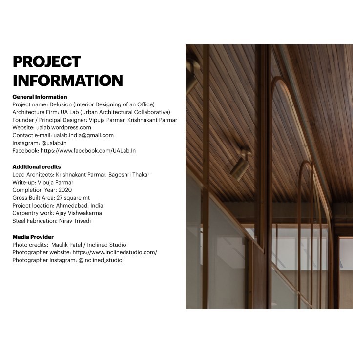 The office space to be designed was a typical rectangular box sandwiched between two shared walls. It was a tight linear space measured about 27 sq m with a single source of light at the end towards the east side. The idea is to create an ambience through delusions to perceive the space to be much larger than its actual size. Delusions created through the effect of reflections and refractions of light within the space. This effect created a dynamic space.