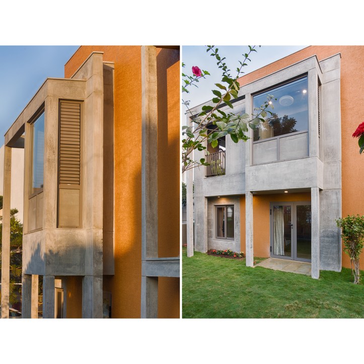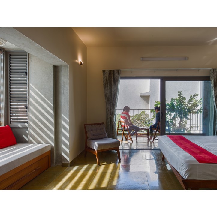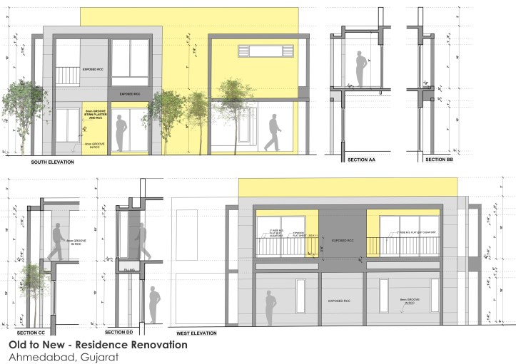 The old load bearing structure provided us with very less freedom to release the space. Using the design language of walls, columns and frames we tried to create envelopes around the main structure. Such that the enclosed space within, could be released in these envelopes. All the new extensions are done in expose RCC structure. The new walls and frames of beams – columns designed as envelopes, are kept open from the top. Beautiful play of light and shadows can be seen throughout the day.
